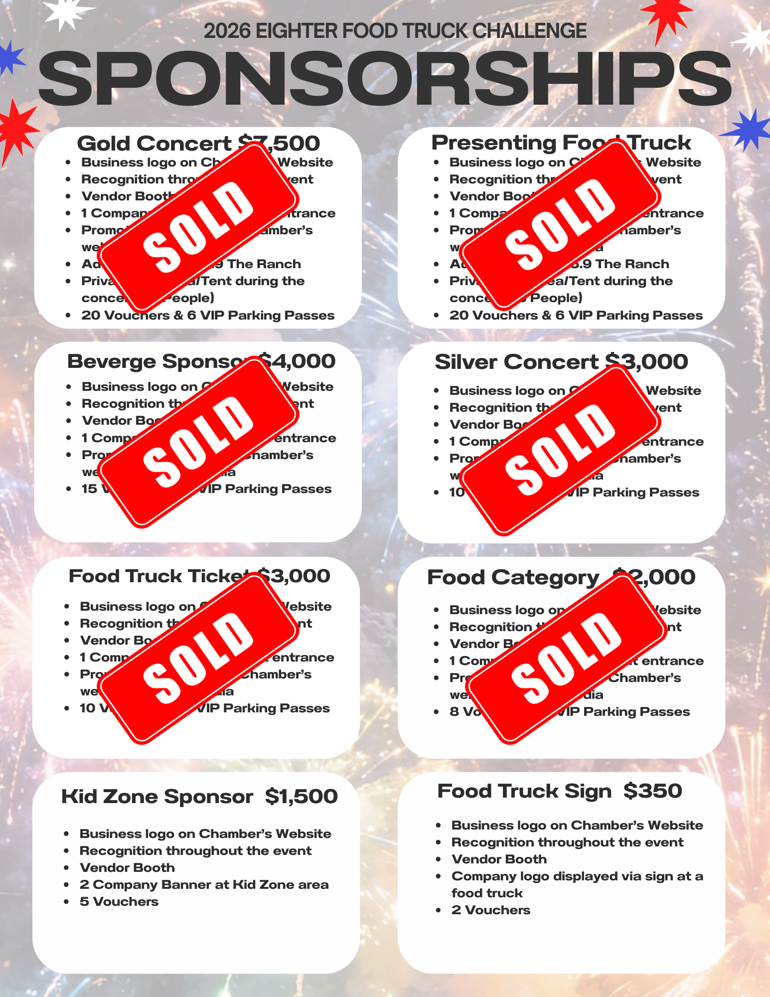 We would love for you to be a Sponsor at the 2026 Eighter Food Truck Challenge.